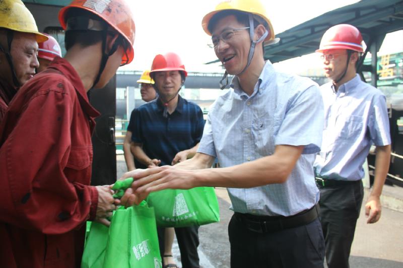 揭安全一行在5、6號(hào)焦?fàn)t詳細(xì)了解一線員工高溫作業(yè)情況,叮囑他們認(rèn)真工作的同時(shí)也要注意防暑降溫,并將裝有綠豆、冰糖等物品的“清涼禮包”送到員工代表手中,把工會(huì)組織的關(guān)懷送到了員工心里。